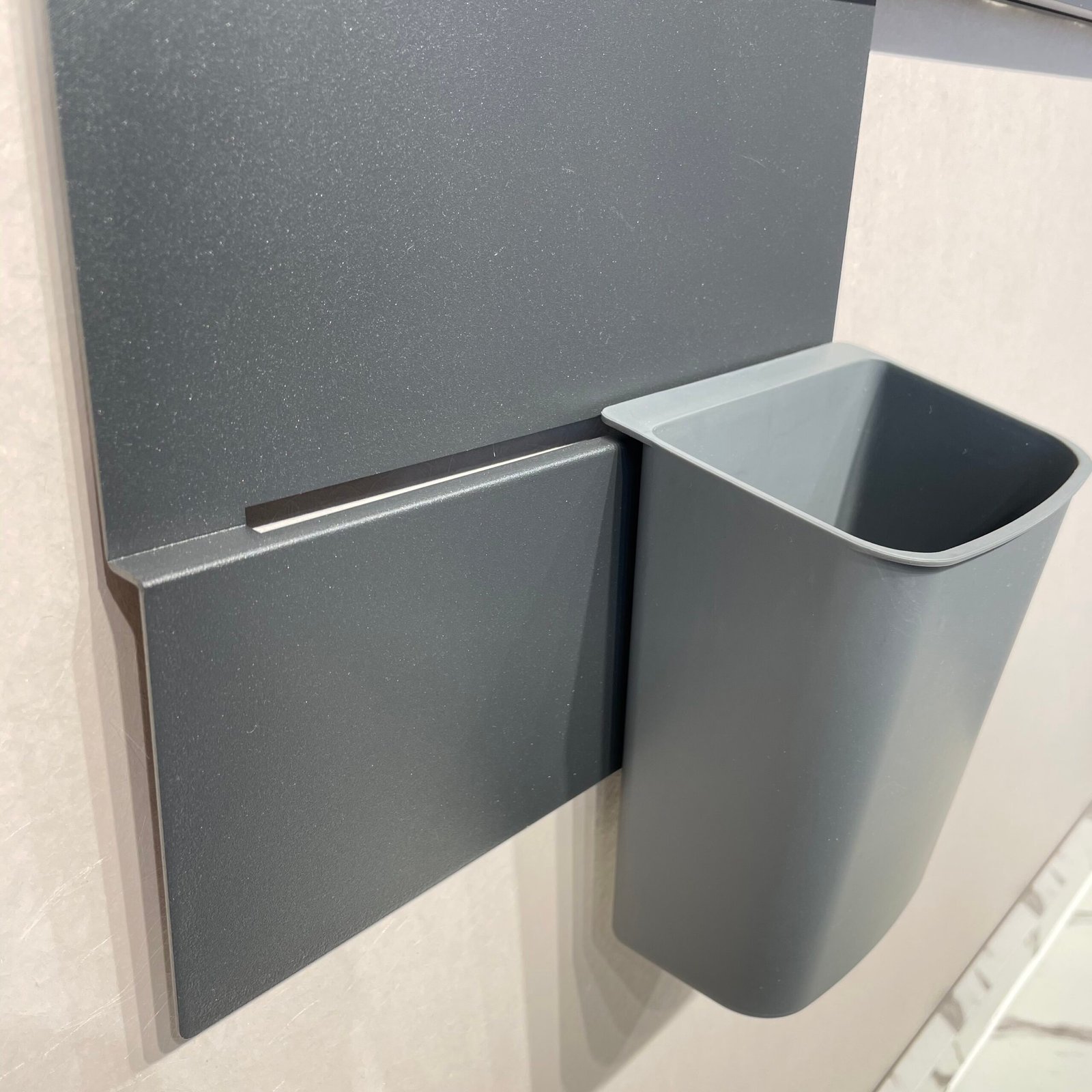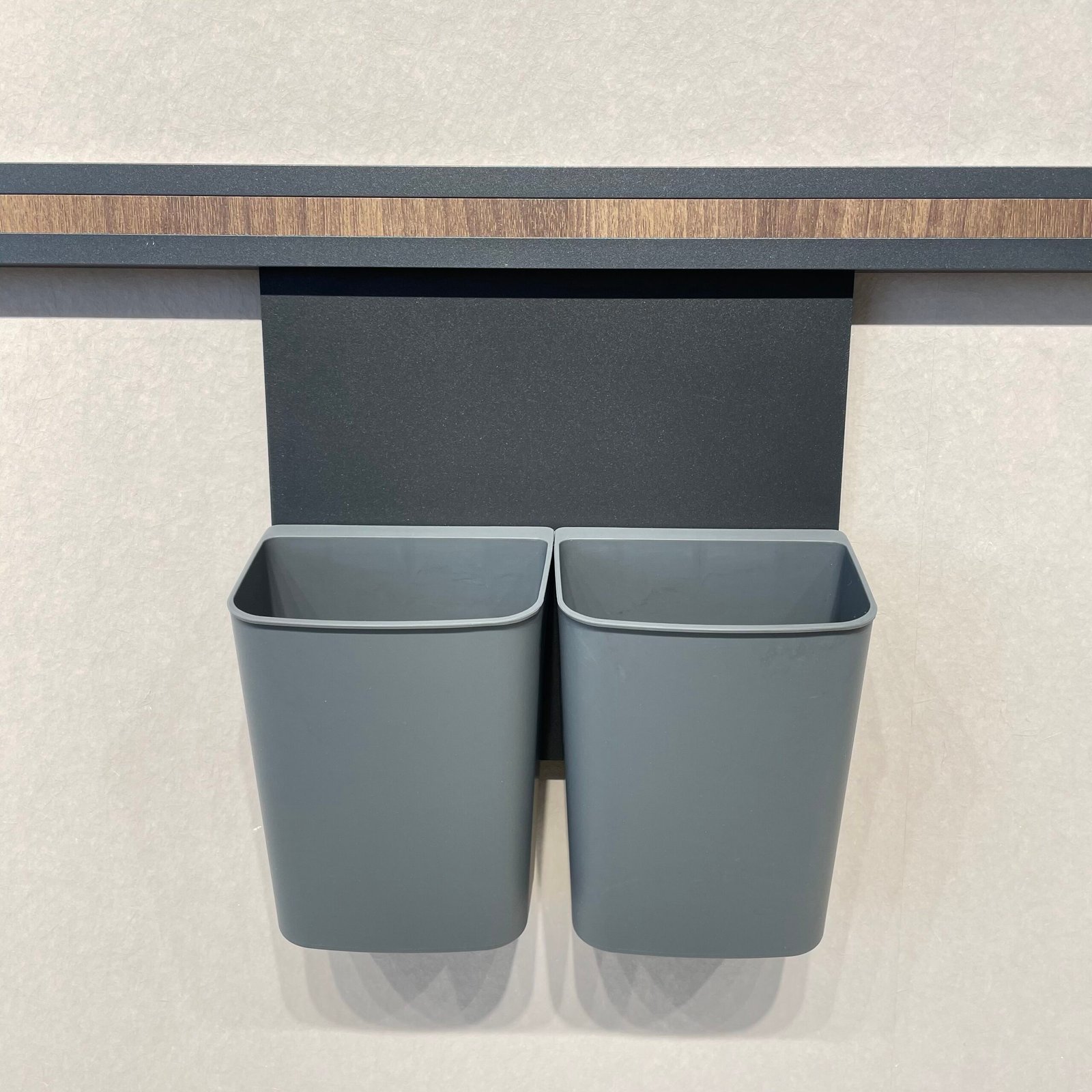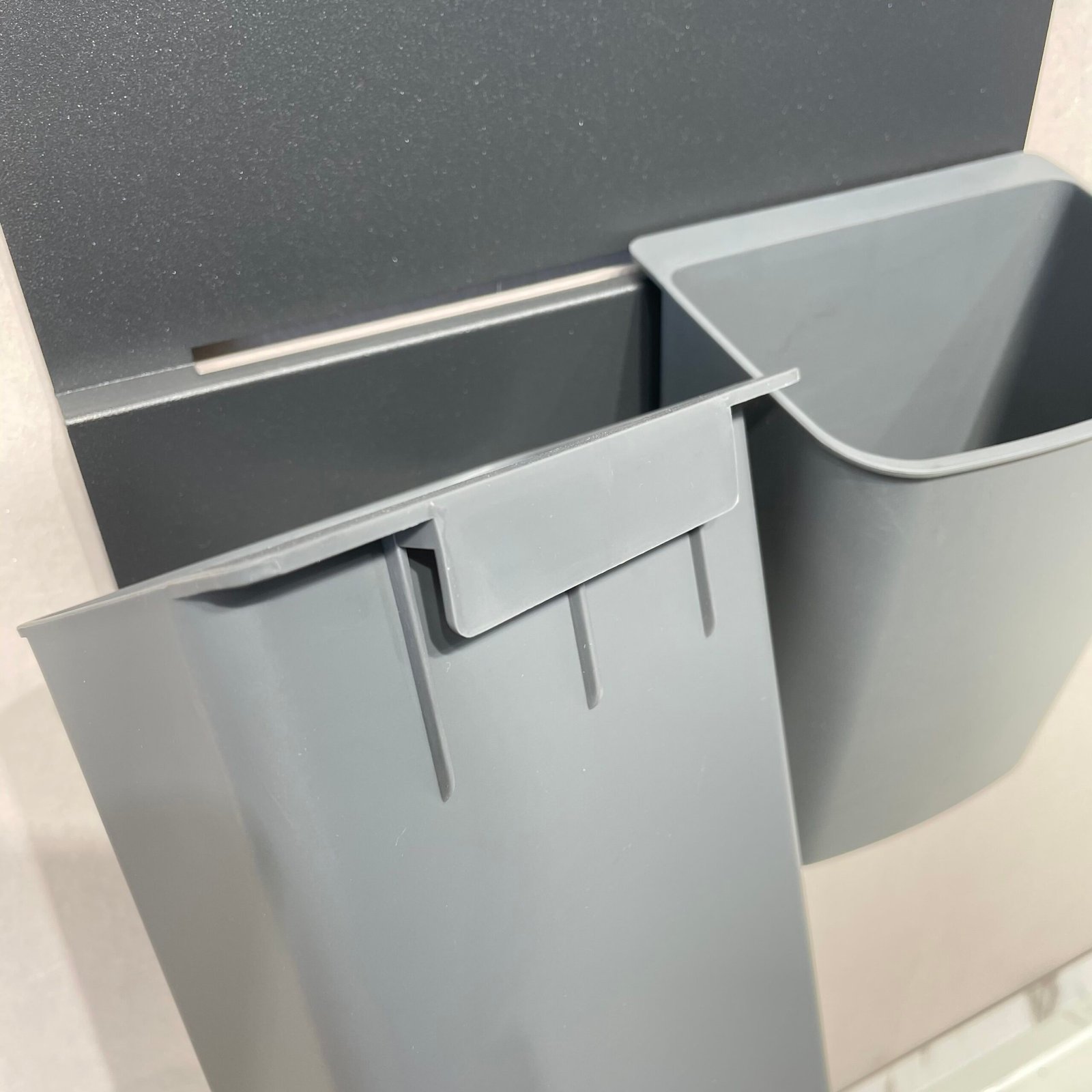 Diseñado para integrarse al sistema de barra multiusos, permite gestionar residuos de forma rápida y ordenada sin alterar la estética del espacio.