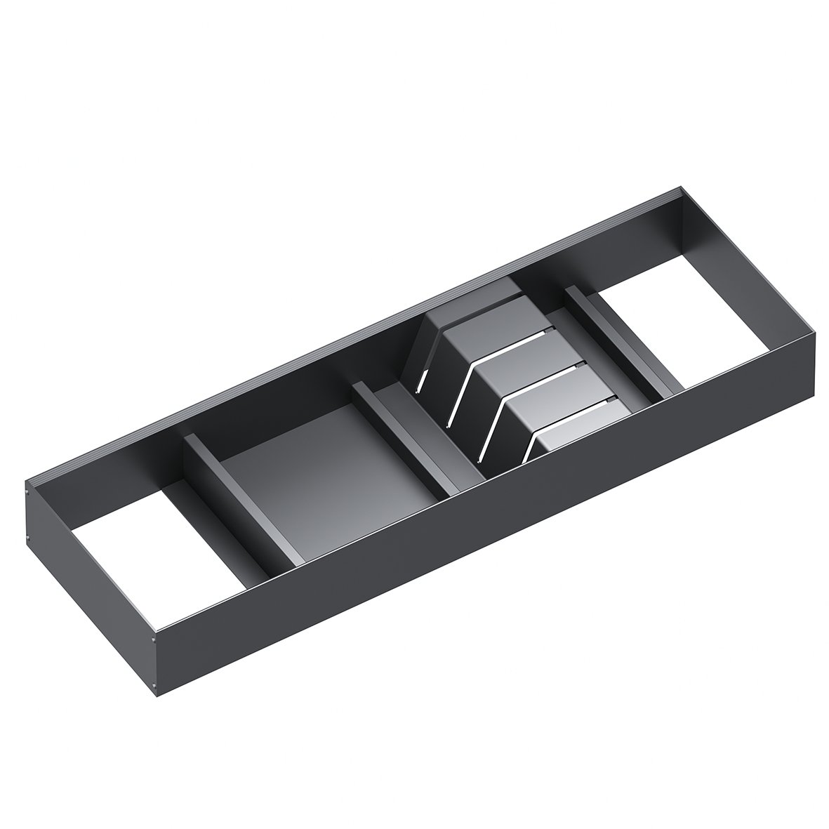 Organizador modular diseñado para almacenar cuchillos de forma segura dentro de cajones de cocina. Su sistema de soportes inclinados permite mantener cada cuchillo protegido, estable y fácilmente accesible, aportando orden y elegancia al interior del mobiliario.