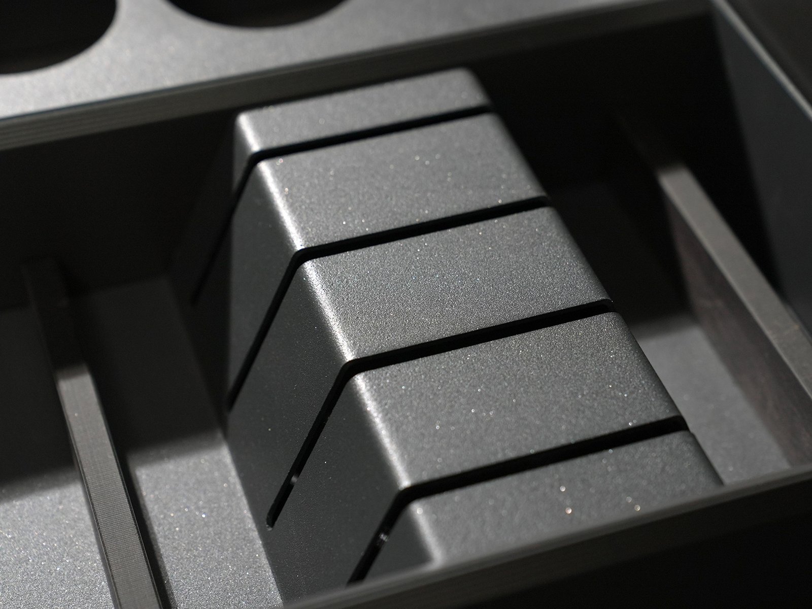 El Home Eleganza Lama ha sido diseñado para optimizar la organización y almacenamiento de cuchillos dentro de los cajones de cocina, ofreciendo una solución segura, funcional y visualmente sofisticada. Su estructura incorpora soportes inclinados especialmente diseñados para cuchillos, permitiendo mantener cada pieza separada, estable y protegida. Este sistema facilita la visualización y el acceso rápido a los utensilios durante la preparación de alimentos. Gracias a su diseño modular y movible, este organizador puede combinarse con otros módulos de la colección Home Eleganza, permitiendo crear configuraciones personalizadas según el tamaño del cajón y las necesidades de cada cocina. Fabricado en aleación de aluminio recubierta en HPL (laminado de alta presión), el sistema combina resistencia estructural, durabilidad y una estética moderna que eleva el diseño interior del mobiliario de cocina.