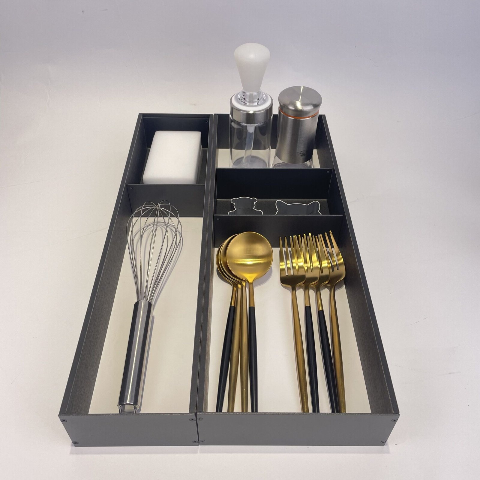Diseñado en formato ancho y horizontal, amplía la superficie útil del cajón con divisiones más pequeñas que permiten organizar piezas de menor tamaño con mayor control y definición.